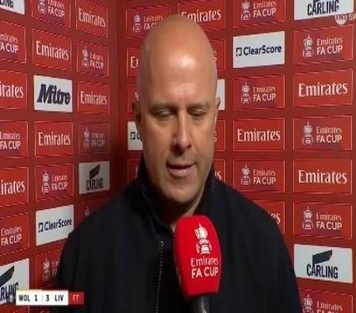 足總杯1/8決賽,利物浦客場(chǎng)3-1戰(zhàn)勝狼隊(duì),利物浦主帥斯洛特賽后接受了TNT體育的采訪。阿爾內(nèi),恭喜你。利物浦晉級(jí)...