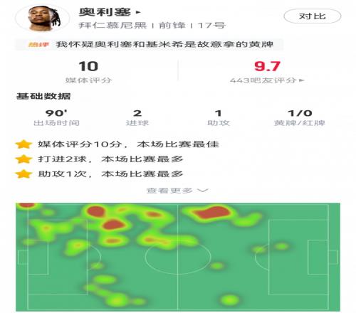 體育播報3月11日宣 歐冠1/8決賽首回合,拜仁6-1客勝亞特蘭大。此役奧利塞首發(fā)打滿全場,球員全場重點數(shù)據(jù)如下↓